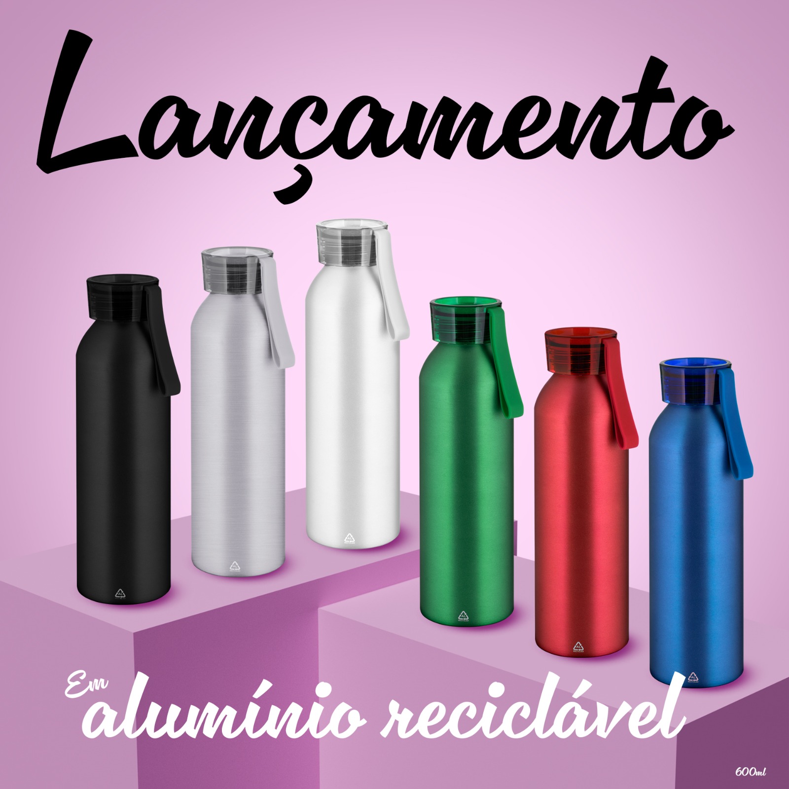 Garrafa em alumínio reciclado acabamento mate com capacidade 600ml.